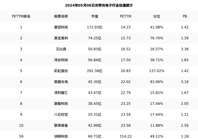 从估值角度看:洲明科技最新市盈率PETTM为314.22,在行业内排名59/93,处于49.12分位。