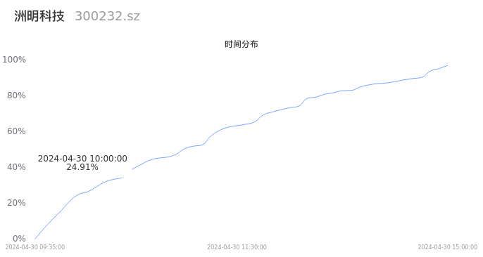 根据成交分布分析,该股票当天缩量成交,成交清淡。时间上看,早盘前半小时成交量占据当天总成交量的24.91%;价格上看,成交呈现中间峰。成交分布分析主要研究股票成交的分布特性,不具有预测功能,请知悉。