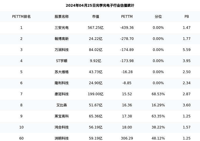 从估值角度看:洲明科技最新市盈率PETTM为306.29,在行业内排名54/93,处于48.12分位。