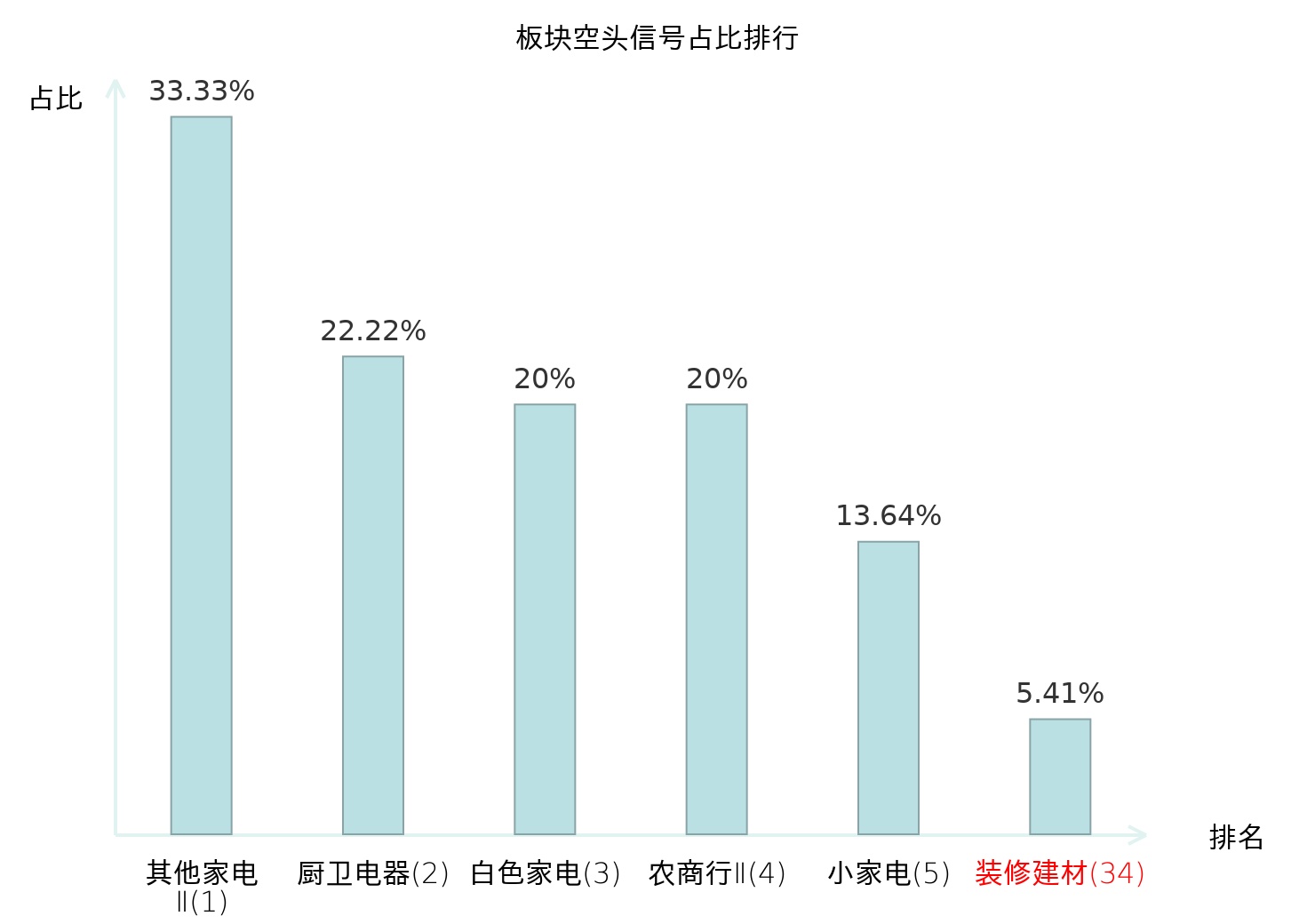 全市场所有行业板块中主力空头信号占比排名中,其他家电Ⅱ板块位居第一。地面兵装Ⅱ板块名次提升最快,较昨日上升107位。