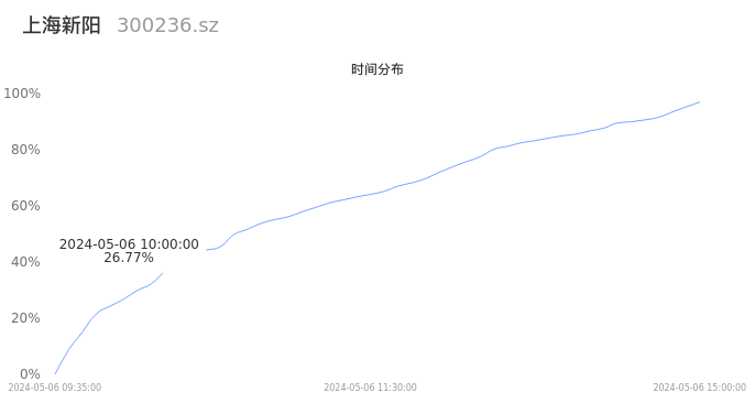 根据成交分布分析,该股票当天缩量成交,成交清淡。时间上看,早盘前半小时成交量占据当天总成交量的26.77%;价格上看,成交呈现中间峰。成交分布分析主要研究股票成交的分布特性,不具有预测功能,请知悉。