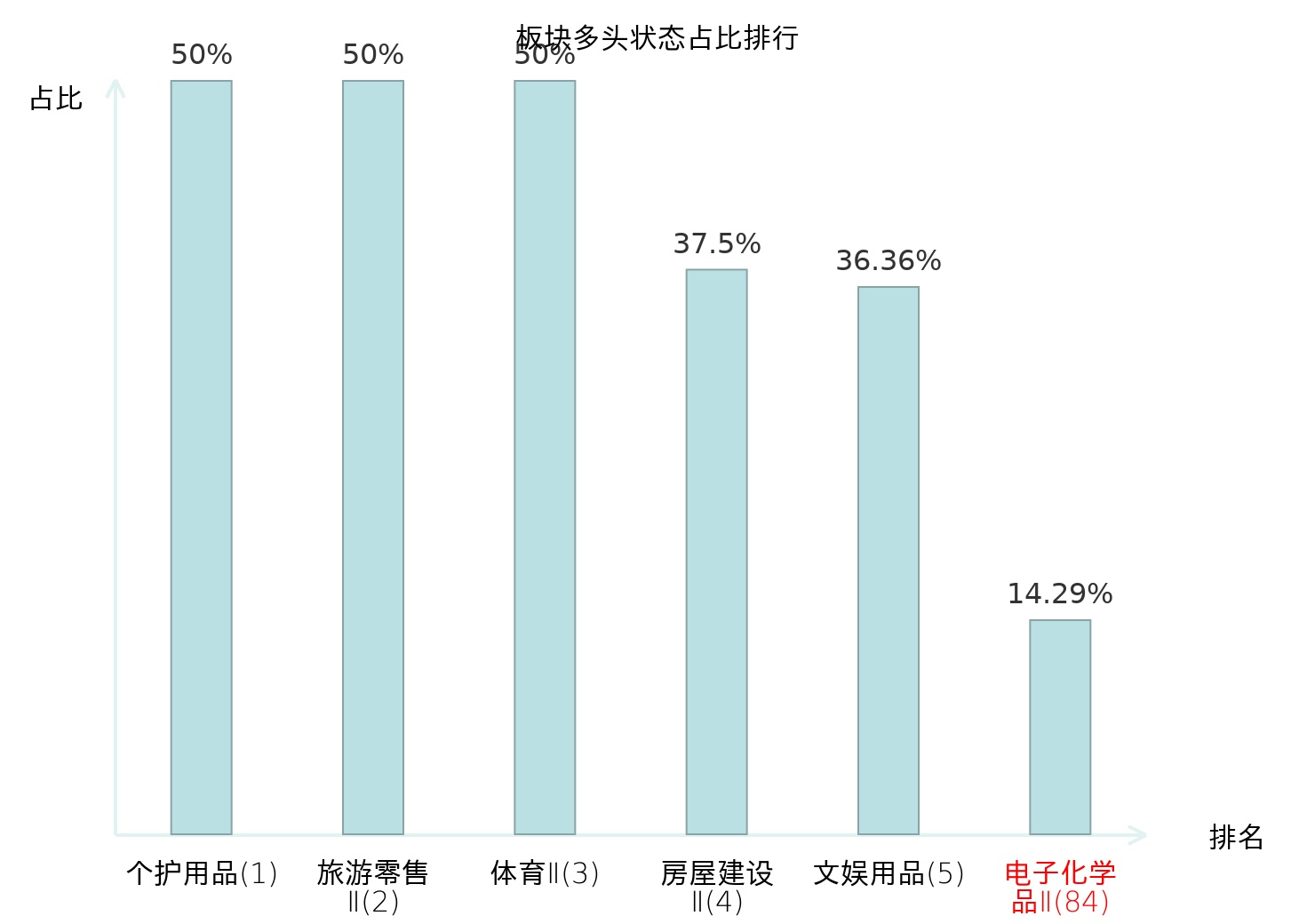 全市场所有行业板块中主力多头状态占比排名中,个护用品板块位居第一。焦炭Ⅱ板块名次提升最快,较昨日上升68位。