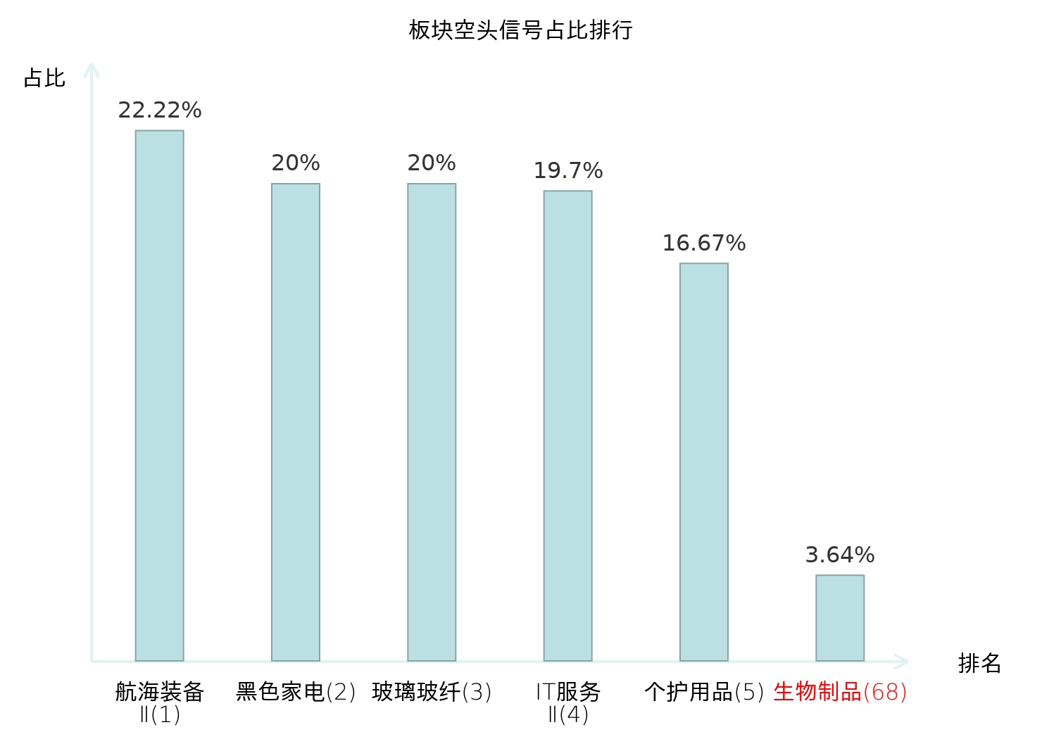 全市场所有行业板块中主力空头信号占比排名中,航海装备Ⅱ板块位居第一。纺织制造板块名次提升最快,较昨日上升107位。