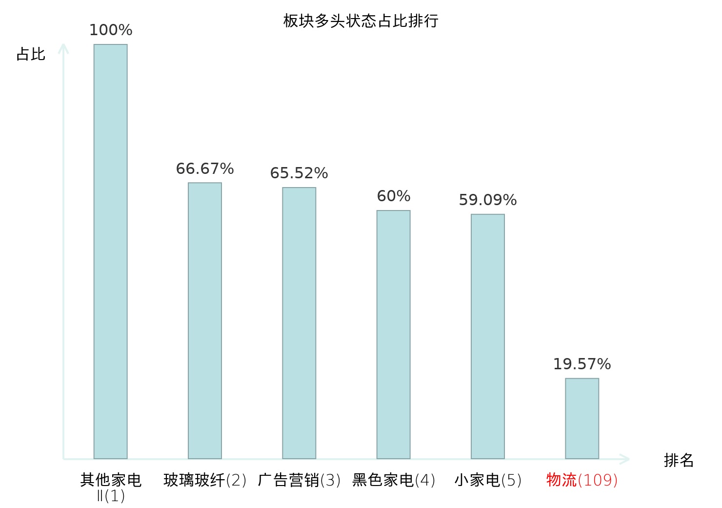 从主力宝信号数据分析,飞力达所属的物流板块中共有9只股票处于主力多头状态,主力多头状态占比在全行业中排名第109位,较昨日上升8位。排名上升表明主力对于该板块的整体看多意愿有所增强。全市场所有行业板块中,其他家电Ⅱ板块的主力多头状态占比最高,位居第一。航天装备Ⅱ板块名次提升最快,较昨日上升79位。这些变动揭示了主力资金在不同行业间的偏好变化,为投资者提供了市场趋势的重要参考。