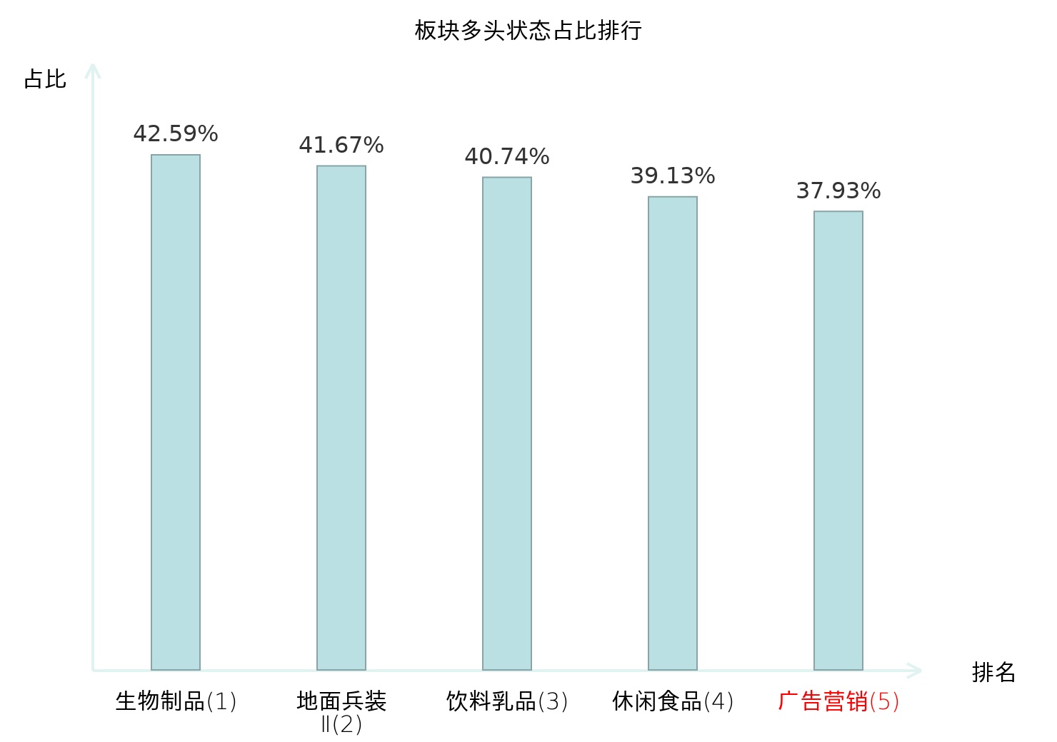 全市场所有行业板块中主力多头状态占比排名中,生物制品板块位居第一。黑色家电板块名次提升最快,较昨日上升65位。