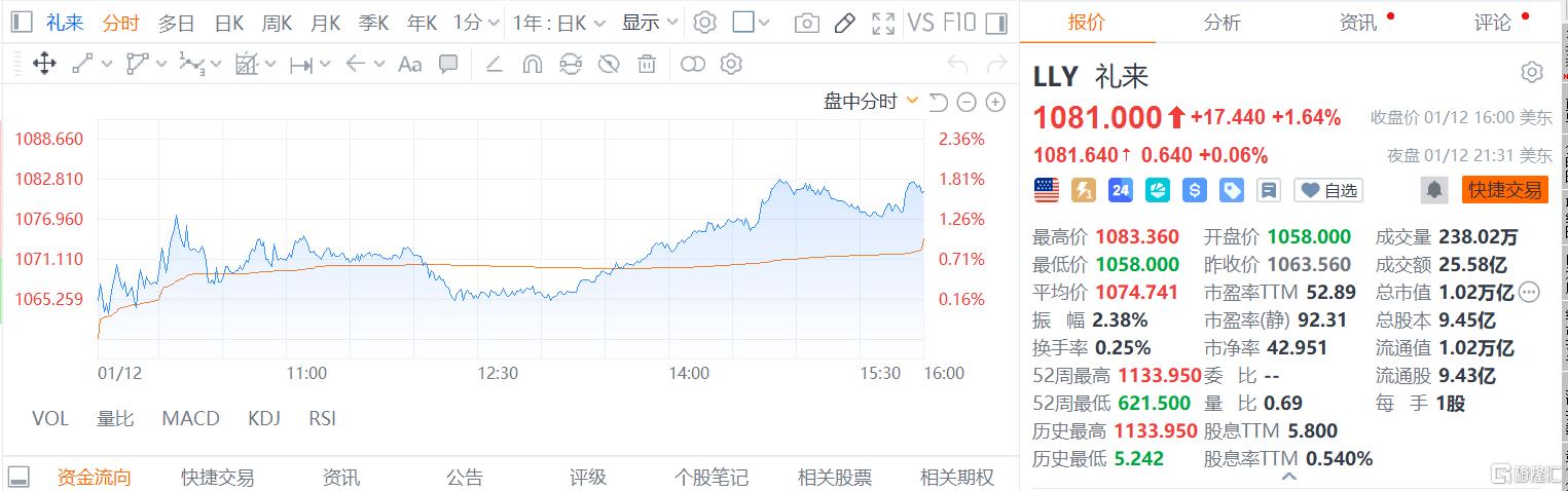 受此消息影响,礼来周一股价小幅上涨,过去一年累计涨幅接近34%。