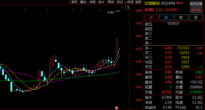 盘初,电网设备股反复活跃,汉缆股份森源电气2连板,广电电气触及涨停,积成电子平高电气许继电气华明装备跟涨。