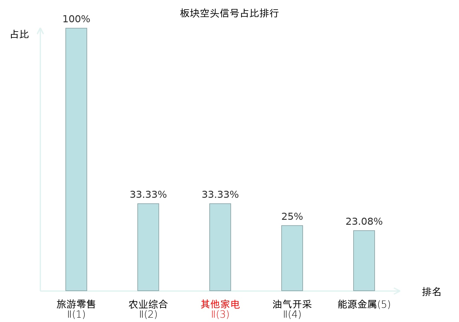 全市场所有行业板块中主力空头信号占比排名中,旅游零售Ⅱ板块位居第一。影视院线板块名次提升最快,较昨日上升105位。