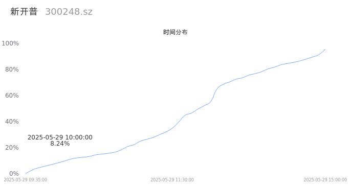 300248新开普2025年05月29日成交25.74万手,成交金额3.44亿,相较昨日放量14.79万手,换手率6.29%,成交清淡。