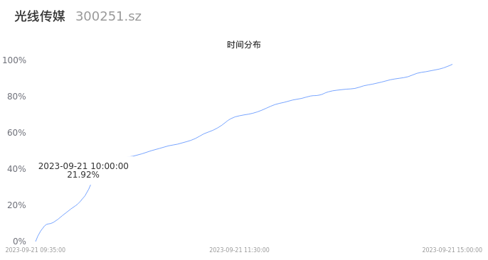 300251光线传媒2023年09月21日成交28.38万手,成交金额2.41亿元,相较昨日缩量7.93万手,换手率1.02%,成交清淡。