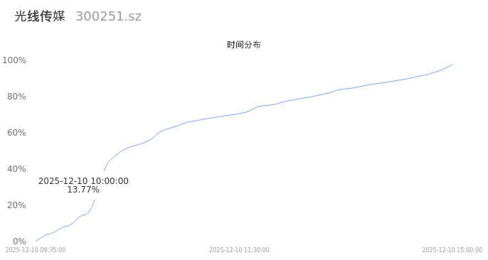 300251光线传媒2025年12月10日成交63.14万手,成交金额10.55亿,相较昨日放量35.66万手,换手率2.28%,成交清淡。