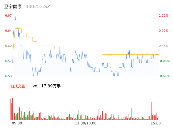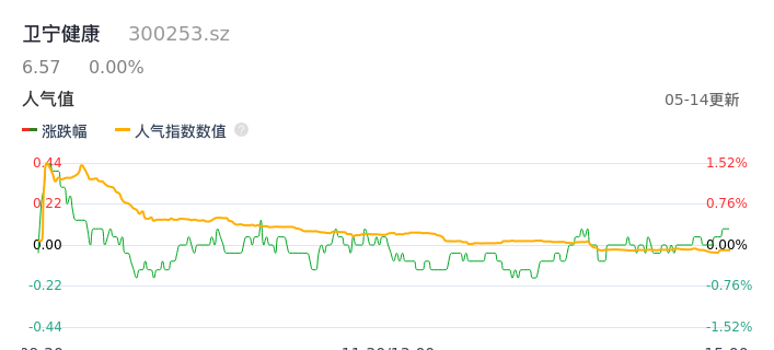 05月14日,卫宁健康收报6.57,股价涨幅0.00%,成交金额1.18亿元,换手率0.96%。
