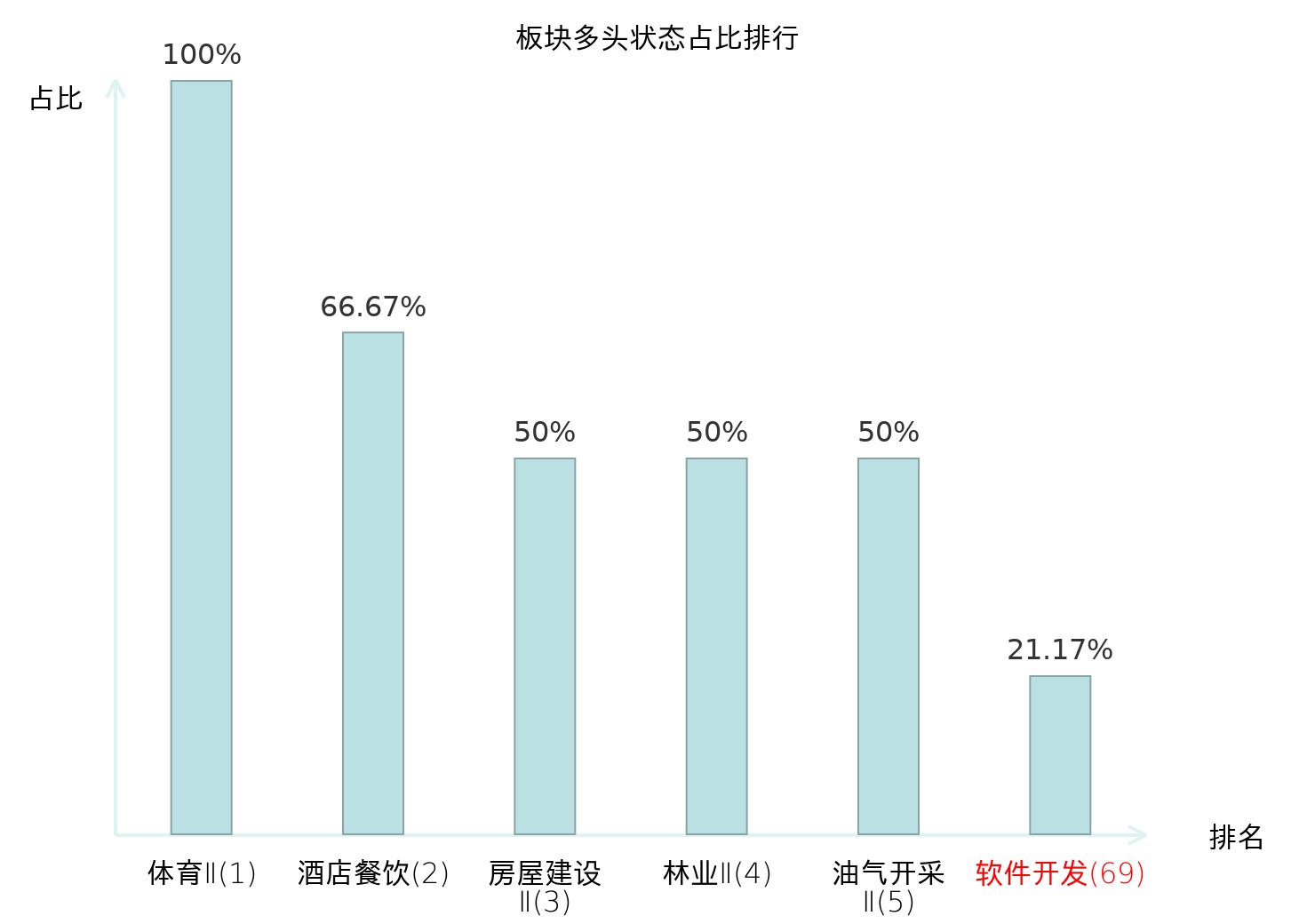 全市场所有行业板块中主力多头状态占比排名中,体育Ⅱ板块位居第一。国有大型银行Ⅱ板块名次提升最快,较昨日上升100位。
