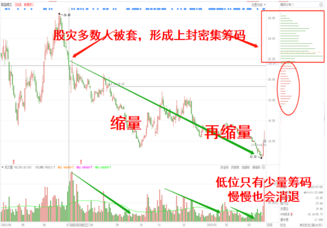 低位没有筹码的个股,一旦开始下跌之后,下方是没有支撑的,很容易出现漫长的下跌行情。