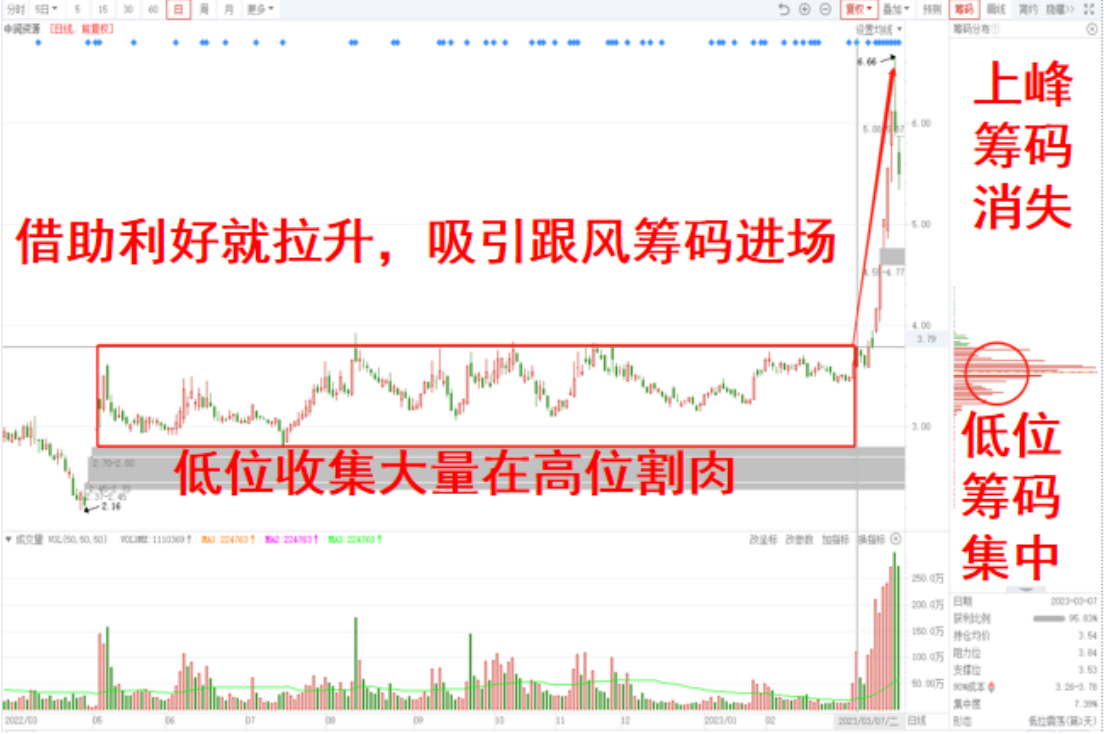 该股长期在底部区间震荡徘徊,筹码相当分散,随着最后的探底结束,随后迎来放量突破,形成了单峰密集的筹码分布态势,随后的回踩中,也是未能跌破突破的阳线,说明主力在拉升前,也同样进行了洗盘。