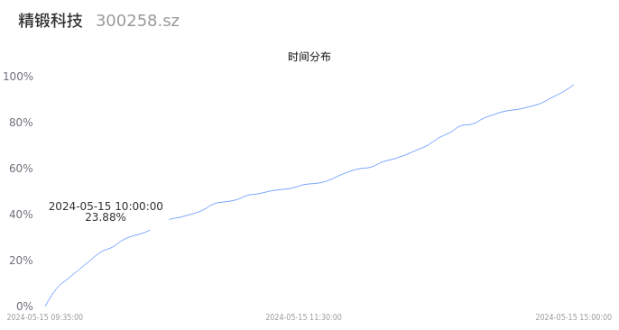 300258精锻科技2024年05月15日成交5.03万手,成交金额4925.40万元,相较昨日缩量6663手,换手率1.08%,成交清淡。