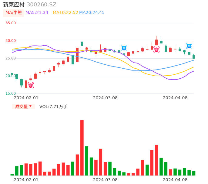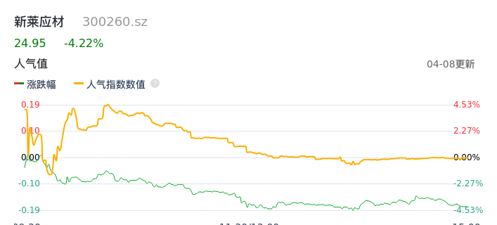 04月08日,新莱应材收报24.95,股价涨幅-4.22%,成交金额1.95亿元,换手率2.77%。