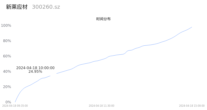 根据成交分布分析,该股票当天放量成交,成交清淡。时间上看,早盘前半小时成交量占据当天总成交量的24.95%;价格上看,成交呈现中间峰。成交分布分析主要研究股票成交的分布特性,不具有预测功能,请知悉。