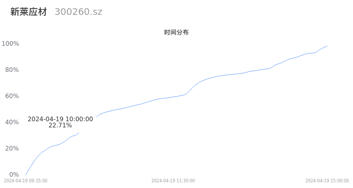 根据成交分布分析,该股票当天放量成交,成交清淡。时间上看,早盘前半小时成交量占据当天总成交量的22.71%;价格上看,成交呈现中间峰。成交分布分析主要研究股票成交的分布特性,不具有预测功能,请知悉。