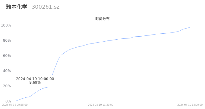 根据成交分布分析,该股票当天放量成交,成交清淡。时间上看,早盘前半小时成交量占据当天总成交量的9.69%;价格上看,成交呈现中间峰。成交分布分析主要研究股票成交的分布特性,不具有预测功能,请知悉。