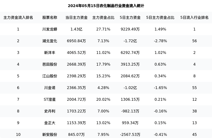 从主力资金流向来看,农化制品行业今日主力资金流入25.25亿元,在所有申万二级行业中排名:48/131。
