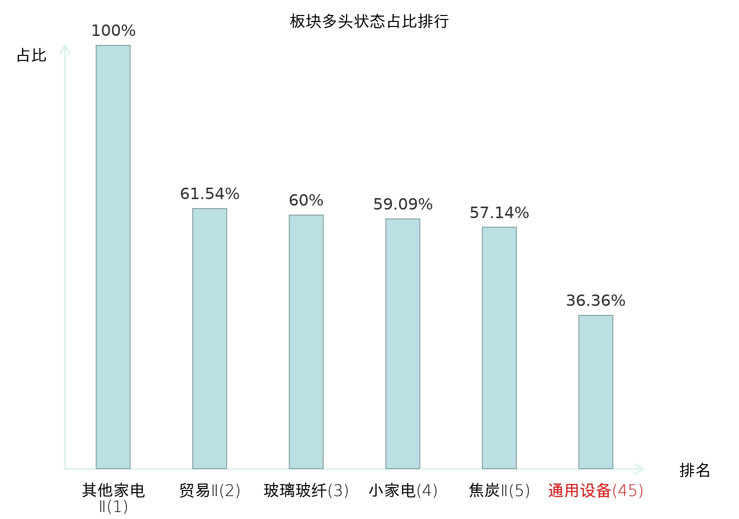 全市场所有行业板块中主力多头状态占比排名中,其他家电Ⅱ板块位居第一。摩托车及其他板块名次提升最快,较昨日上升76位。