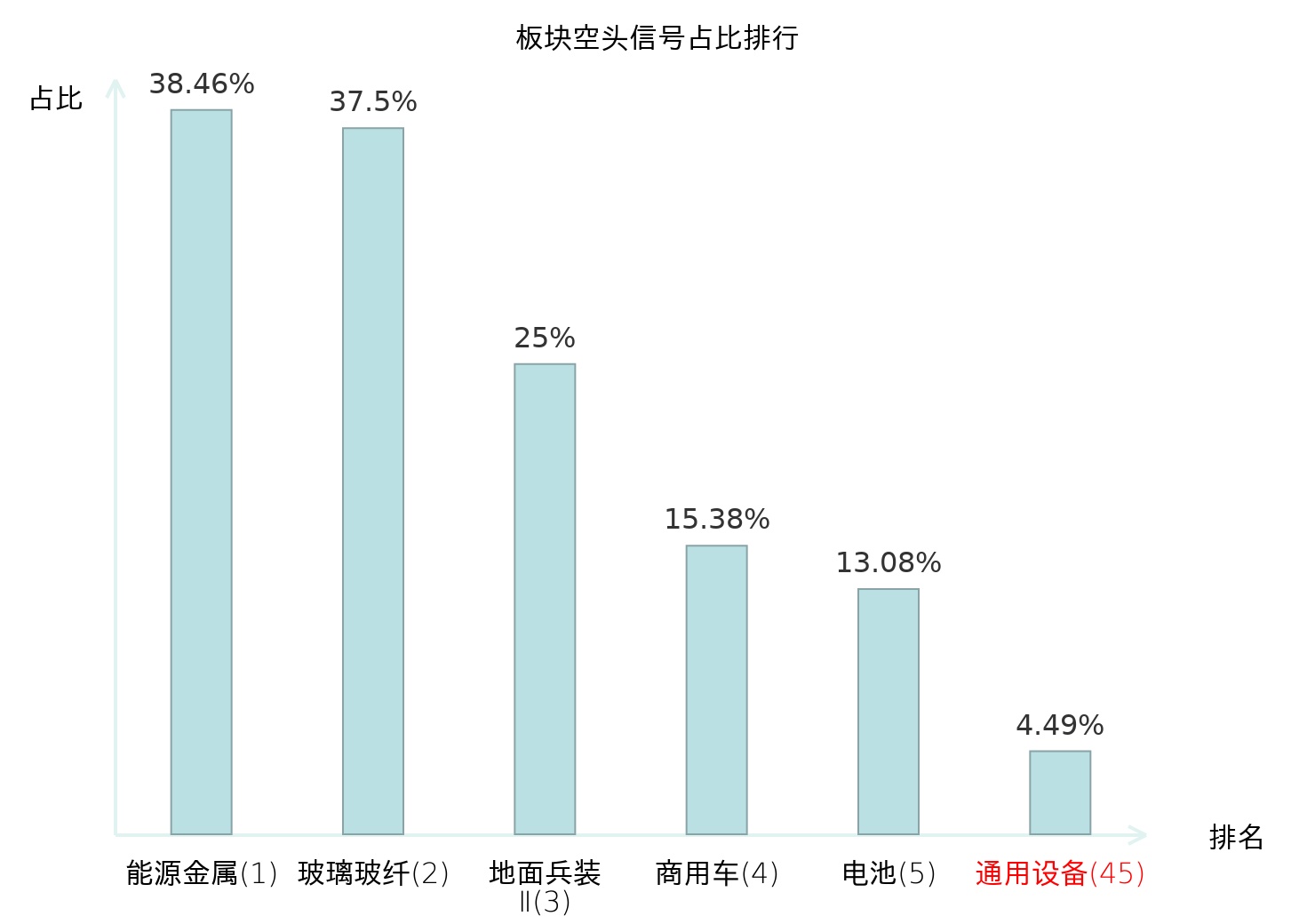 全市场所有行业板块中主力空头信号占比排名中,能源金属板块位居第一。通信服务板块名次提升最快,较昨日上升102位。