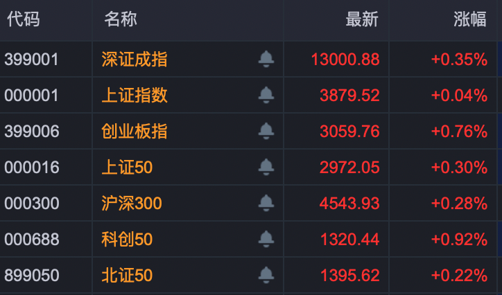 今日早盘,A股探底回升,深证成指重回13000点以上,科创50在1300点附近获得支撑后反身上攻,上证指数北证50创业板指等也均微幅飘红。下跌个股远多于上涨个股,成交保持平稳。
