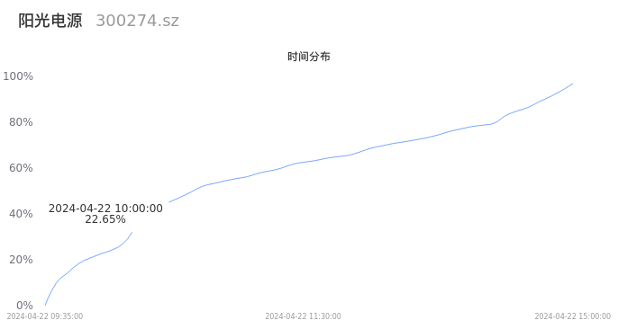 300274阳光电源2024年04月22日成交15.52万手,成交金额14.69亿元,相较昨日缩量11.37万手,换手率1.38%,成交清淡。