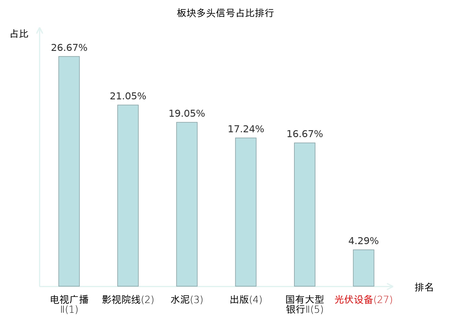 全市场所有行业板块中主力多头信号占比排名中,电视广播Ⅱ板块位居第一。国有大型银行Ⅱ板块名次提升最快,较昨日上升118位。