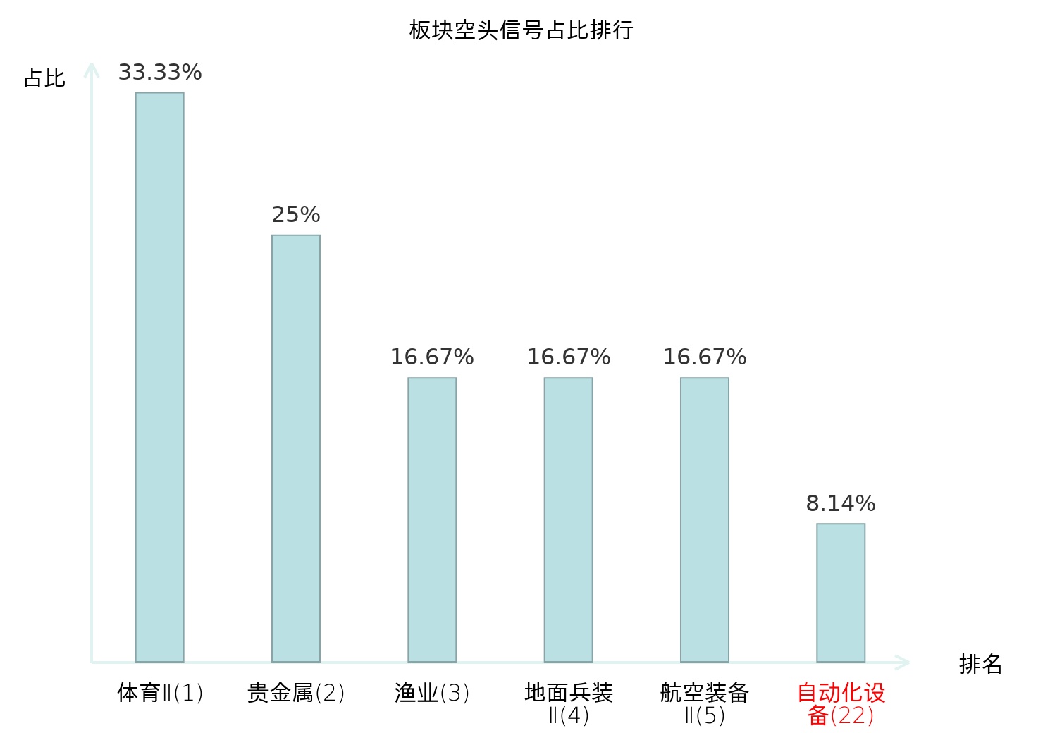全市场所有行业板块中主力空头信号占比排名中,体育Ⅱ板块位居第一。软件开发板块名次提升最快,较昨日上升120位。