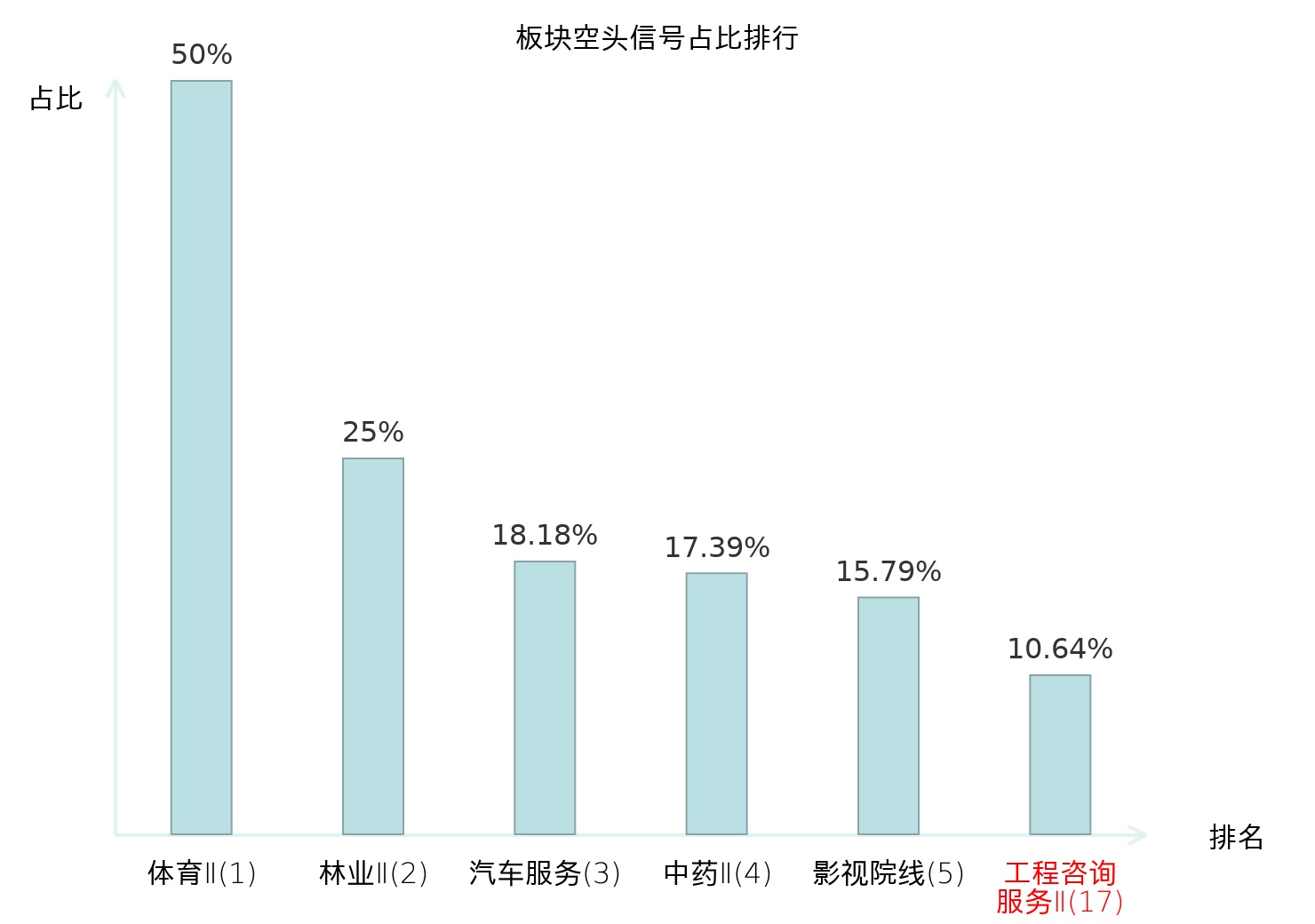 全市场所有行业板块中主力空头信号占比排名中,体育Ⅱ板块位居第一。文娱用品板块名次提升最快,较昨日上升101位。
