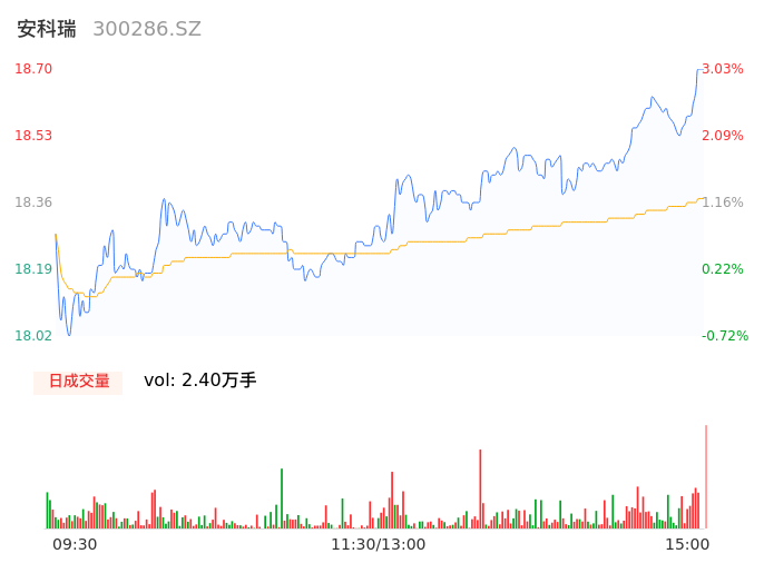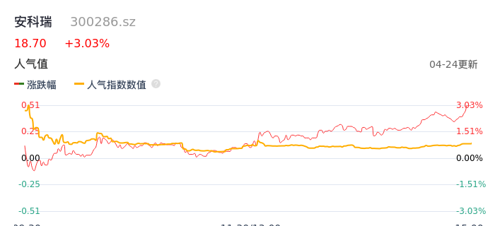 04月24日,安科瑞收报18.70,股价涨幅3.03%,成交金额4408.48万元,换手率1.37%。