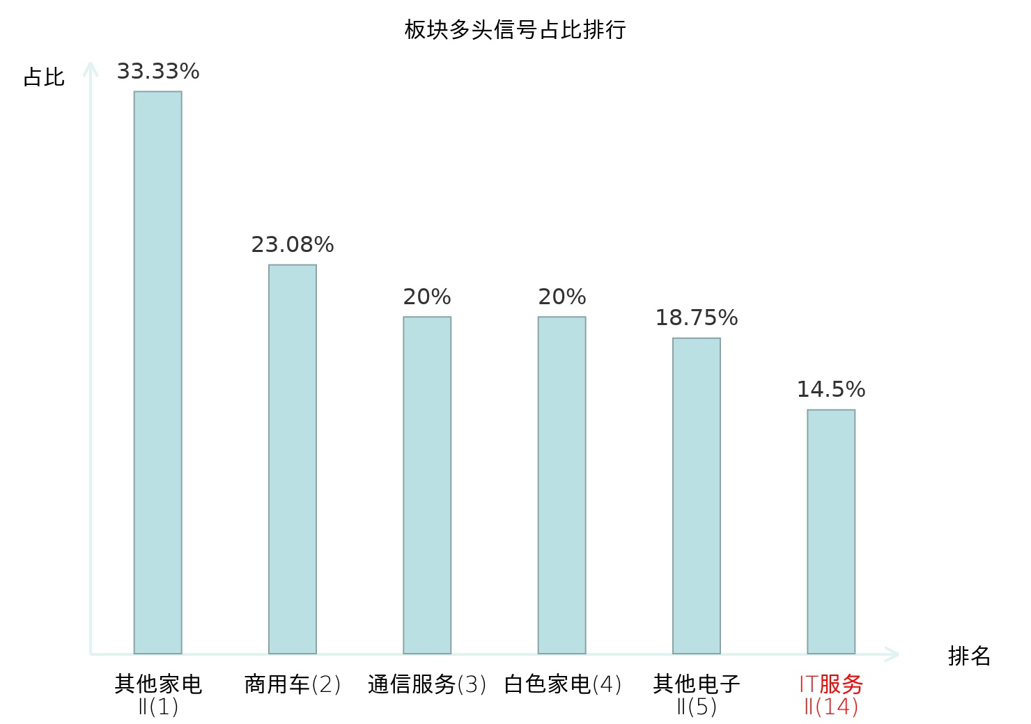从主力宝信号数据分析,飞利信所属的IT服务Ⅱ板块中共19只股票发出主力多头信号,主力多头信号占比在全行业中排名第14位,较昨日上升64位。排名越高说明主力当日买入意愿越强。全市场所有行业板块中主力多头信号占比排名中,其他家电Ⅱ板块位居第一;其他家电Ⅱ板块名次提升最快,较昨日上升129位。这些变化反映了主力资金在不同行业间的偏好调整,为投资者提供了关于市场趋势的重要参考。