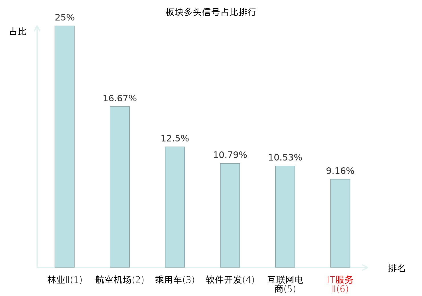 全市场所有行业板块中主力多头信号占比排名中,林业Ⅱ板块位居第一。林业Ⅱ板块名次提升最快,较昨日上升125位。