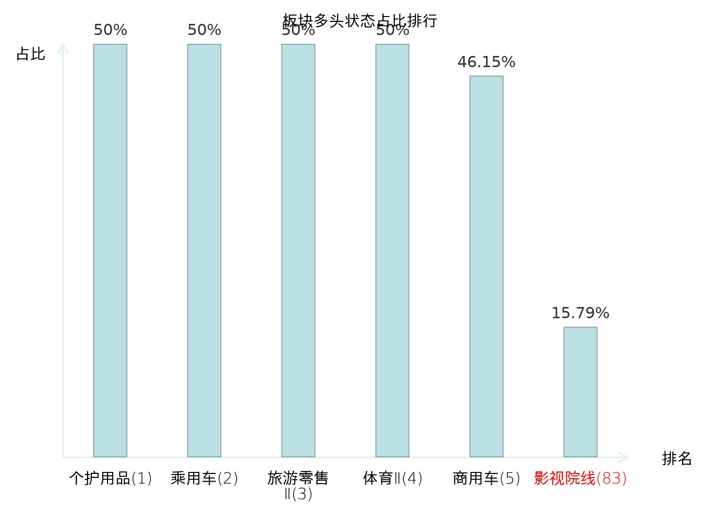 全市场所有行业板块中主力多头状态占比排名中,个护用品板块位居第一。林业Ⅱ板块名次提升最快,较昨日上升94位。