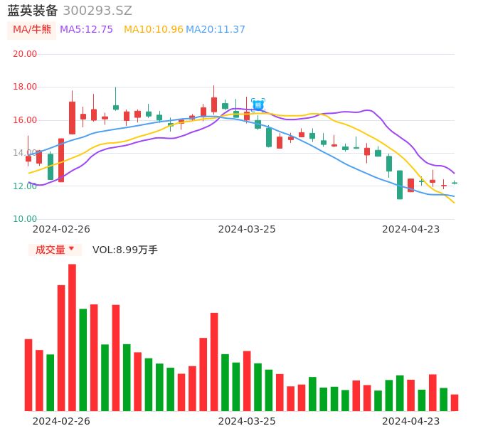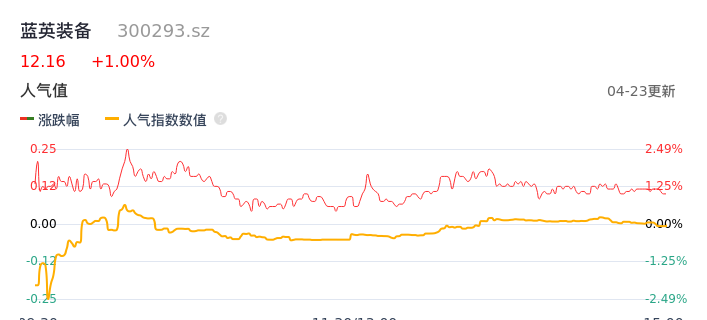 04月23日,蓝英装备收报12.16,股价涨幅1.00%,成交金额1.10亿元,换手率3.21%。