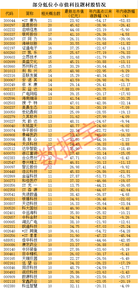 低位小市值科技题材王名单出炉