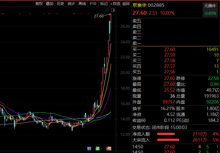 公开信息显示,京泉华专注于电子元器件行业,主要从事磁性元器件、电源及特种变压器研发、生产及销售业务。概念方面,京泉华拥有充电桩、5G、新能源汽车、华为概念、富士康概念、无线充电、OLED、小米概念、OLED设备制造、第三代半导体、汽车电子、氮化镓等题材。