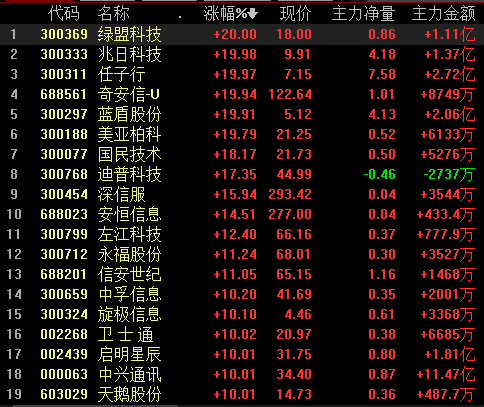 受此影响,信息安全板块12日盘中大幅拉升,截至发稿,绿盟科技、奇安信、兆日科技、任子行、蓝盾股份等涨幅达20%封涨停,美亚柏科涨幅超19%,深信服涨约18%,迪普科技、安恒信息涨幅超14%,卫士通、启明星辰、国华网安等涨停。