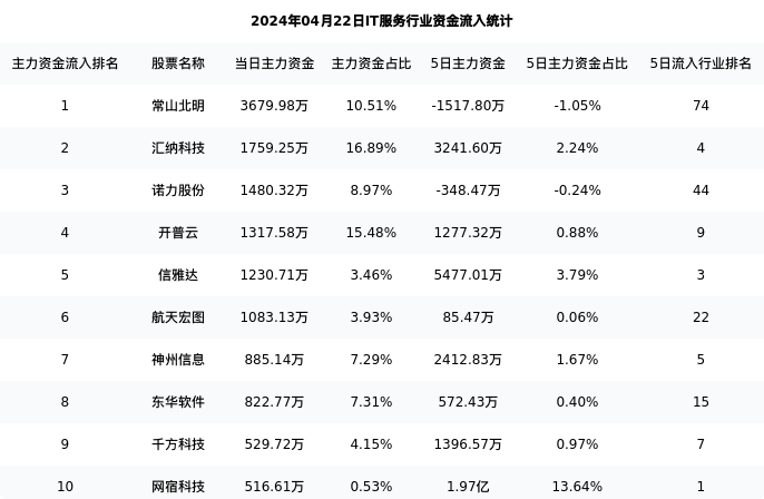 从主力资金流向来看,IT服务行业今日主力资金流入36.58亿元,在所有申万二级行业中排名:118/131。