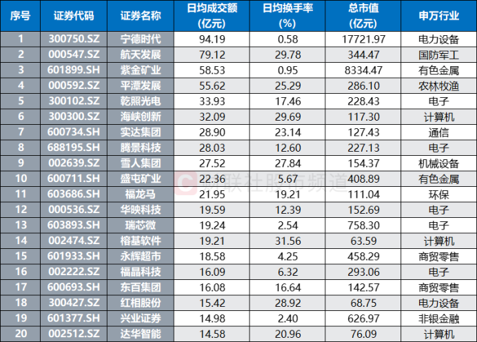 注:近1个月日均成交额居前的福建地区股(截至12月15日收盘)