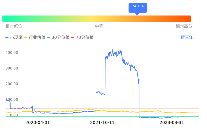 2023年03月31日,*ST长方下跌0.51%收于1.94,今日成交金额1948.65万元。下文将从市盈率PETTM、市净率PB、市现率3个角度去分析公司估值情况。