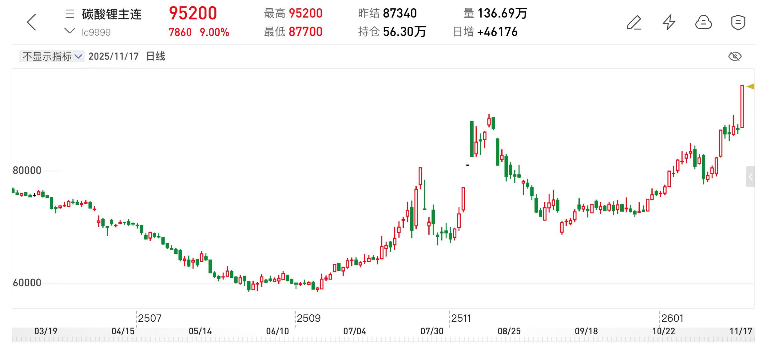 消息面上,受需求持续景气带动,国内碳酸锂期货今日盘中拉涨约9%,直逼10万元大关。