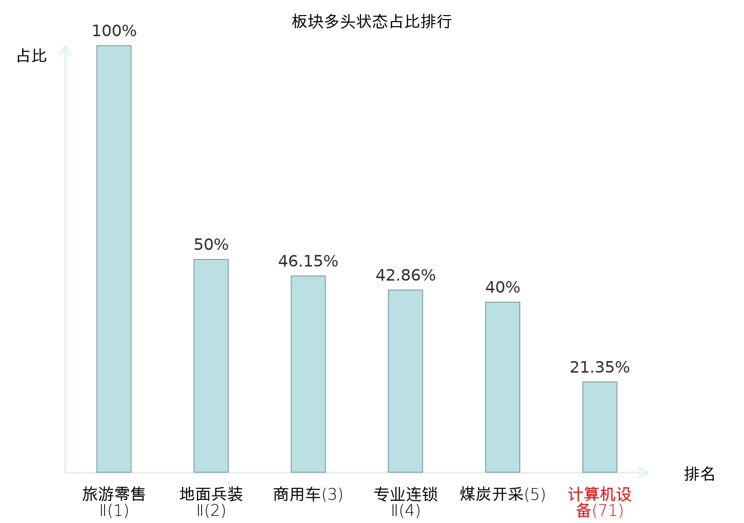 从主力宝信号数据分析,同有科技所属的计算机设备板块中共有19只股票处于主力多头状态,主力多头状态占比在全行业中排名第71位,较昨日上升12位。排名较高表明主力对于该板块整体看多意愿较强,此次排名上升反映了主力对板块态度的积极调整。全市场所有行业板块中主力多头状态占比排名中,旅游零售Ⅱ板块位居第一;汽车服务板块名次提升最快,较昨日上升83位。这些变动揭示了不同行业间主力资金偏好的变化,为投资者提供了重要的市场情绪和趋势参考。