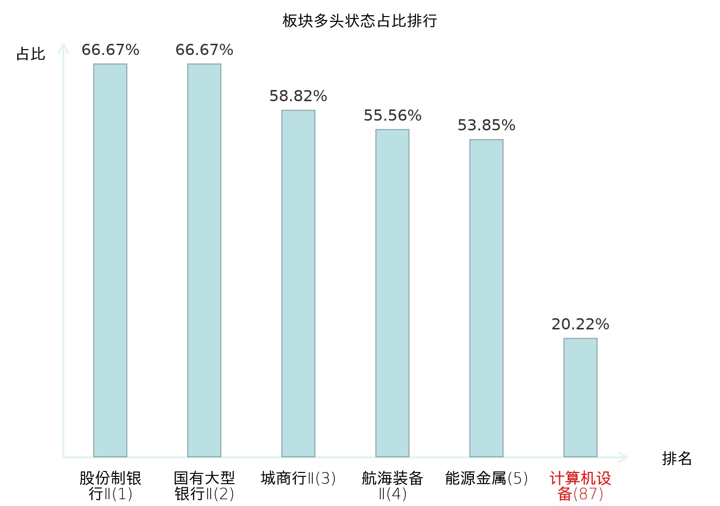 从主力宝信号数据分析,同有科技所属的计算机设备板块中共18只股票处于主力多头状态,主力多头状态占比在全行业中排名第87位,较昨日下降13位;排名越高说明主力对于板块整体看多意愿越强;此次排名下降可能反映主力对该板块态度趋于谨慎。全市场所有行业板块中主力多头状态占比排名中,股份制银行Ⅱ板块位居第一;渔业板块名次提升最快,较昨日上升61位;这些变动揭示了主力资金在不同行业间的配置倾向变化,为投资者评估市场结构性机会提供了客观依据。