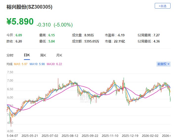 A股异动丨裕兴股份跌逾5% 股价创年内新低