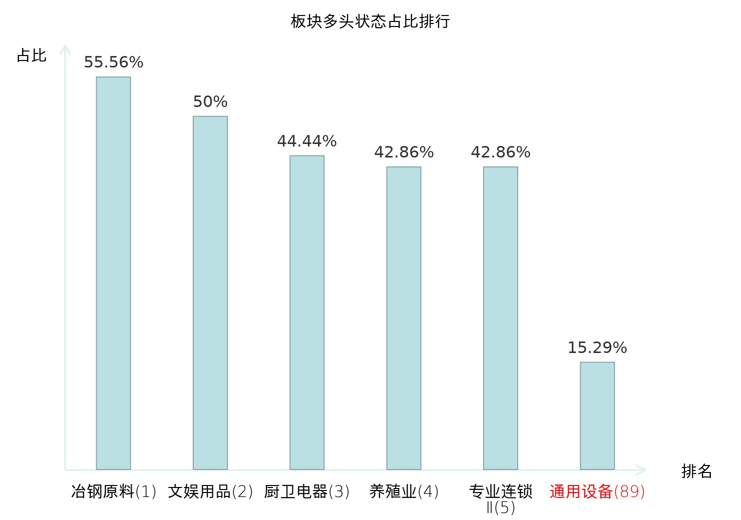 全市场所有行业板块中主力多头状态占比排名中,冶钢原料板块位居第一。能源金属板块名次提升最快,较昨日上升48位。