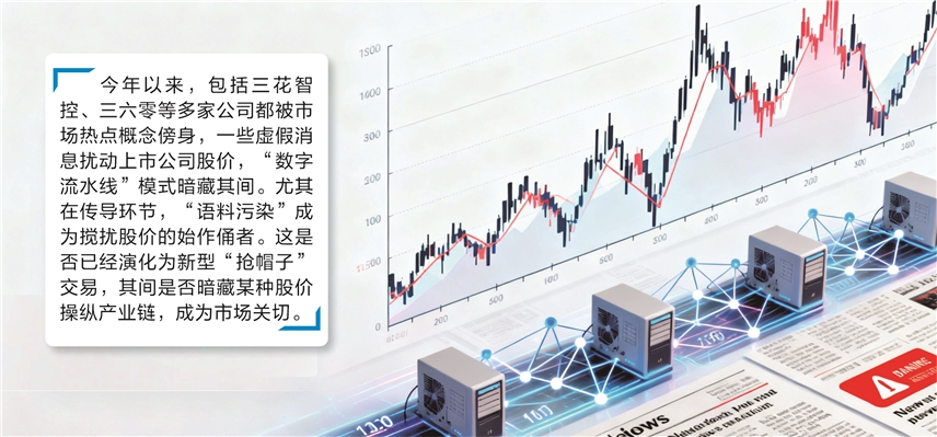 三花智控并非孤例。今年以来,包括三六零、慈星股份等公司都曾被市场热点概念傍身,一些虚假消息扰动上市公司股价,多数市场人士认为“数字流水线”模式暗藏其间。尤其在这些案例的传导环节,一方面,社交媒体和自媒体高频出现,甚至实现跨国传播;另一方面,AI技术加持放大了外溢效应,“语料污染”成为搅扰股价的始作俑者。这是否已经演化为新型“抢帽子”交易,其间是否暗藏某种股价操纵产业链,成为市场关切。