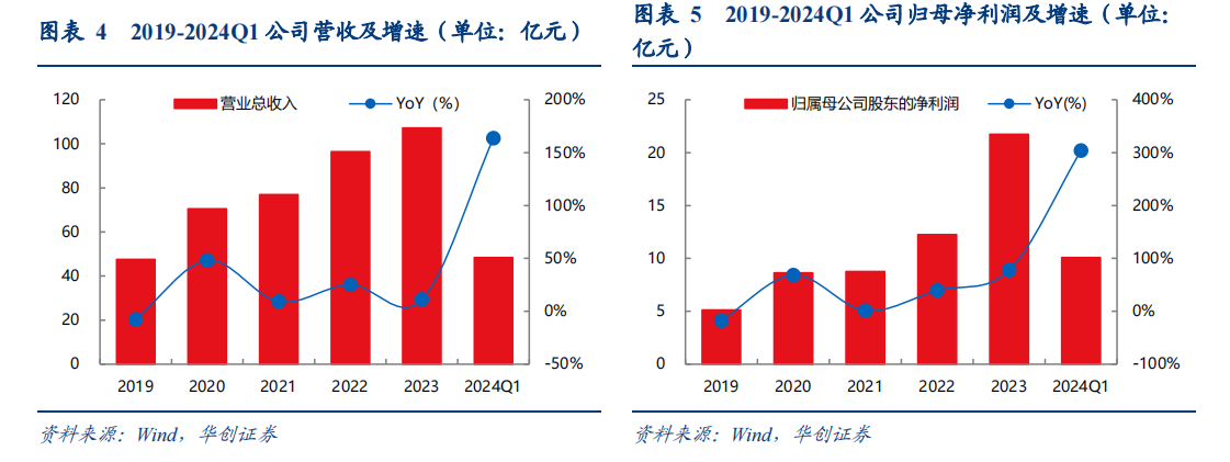 2023年以来,全球云厂商的AI算力需求和相关资本开支的提升带动了800G等高速光模块需求的显著增长,并加速了高速光模块产品的技术迭代步伐。2023年公司实现营业收入107.18亿元,同比增长11.16%;实现归母净利润21.74亿元,同比增长77.58%。2024Q1实现营业收入48.43亿元,同比增长163.59%;实现归母净利润10.09亿元,同比增长303.84%。